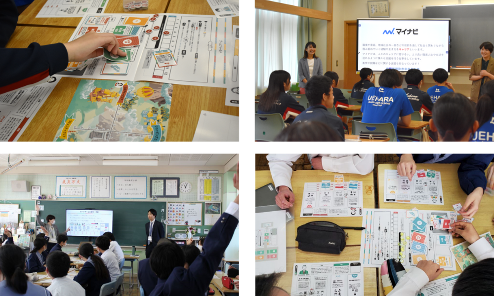 株式会社マイナビが創業50周年記念事業として開始した中学生向け出張授業は、カードゲームやワークを通じて多様な職業や業界を学び、キャリア観を育てることを目的としたプログラムです。