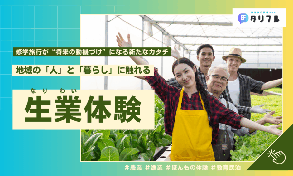 地域の文化や産業を実際に体験する「生業体験」は、まさに次代の修学旅行に求められる要素を備えているといえます。